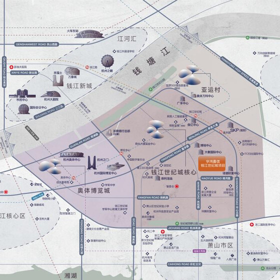 项目位于钱江世纪城的核心区域—奥体板块,杭州“陆家嘴”。主要的建筑群有杭州奥体中心、杭州国际博览中心、奥体游泳馆等地标建筑,商业有杭州之门、万象世界中心、信达中心等。项目所在便是世纪城四区交汇处,紧临亚洲店王SKP,享受优质资源配套,也是区域内的品质之作。