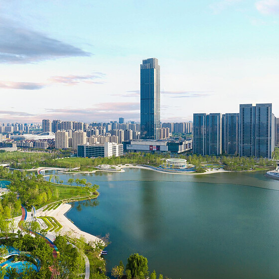 【城北发展新区域 】地处世界遗产运河支流旁,有国际设计团队参与建设以玉湖为中心区域。构建基于 “湖区 + 商业 + 产城” 模式的区域,促进生产、生态、生活融合,助力城北发展。