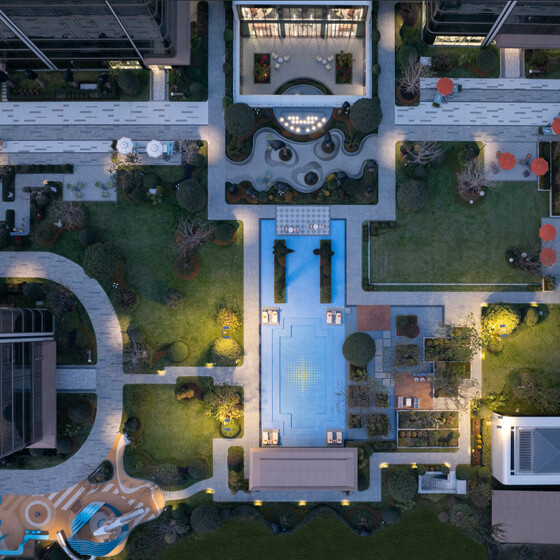 【精致景观规划 】项目景观总面积约17000方,其中中央景观约8000方。景观设计借鉴三亚嘉佩乐的美学,融入 “天圆地方” 东方理念,设有相关景观主题区域。 8. 【专属业主会所 】为业主打造约1200方下沉庭院会所和 3 座生活泛会所,提供游泳、健身、私宴、瑜伽等多种功能区域。